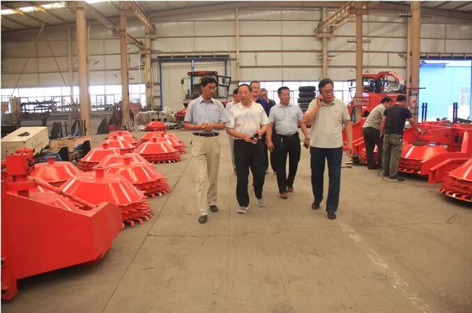 中國農業機械化協會會長劉憲在董事長張煥民和總經理吳運濤的陪同下,在配套加工車間視察指導工作。