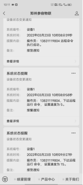 當發生停水、停電、機械故障等情況;發生噴頭車離主機距離小于50米或零距離靠近主機,水壓低于設定值等情況下智控報警系統在15分鐘內向操作人員手機進行三次短信發送和三次撥打電話報警。 |