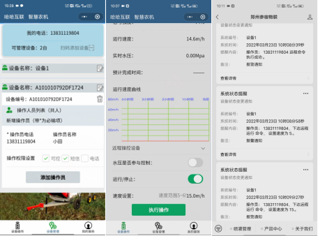可即時、直觀、準確地對噴灌機作業速度、回收時間、降水量等作業數據進行監控操控,確保作業面積內澆水量一致和精準。 |