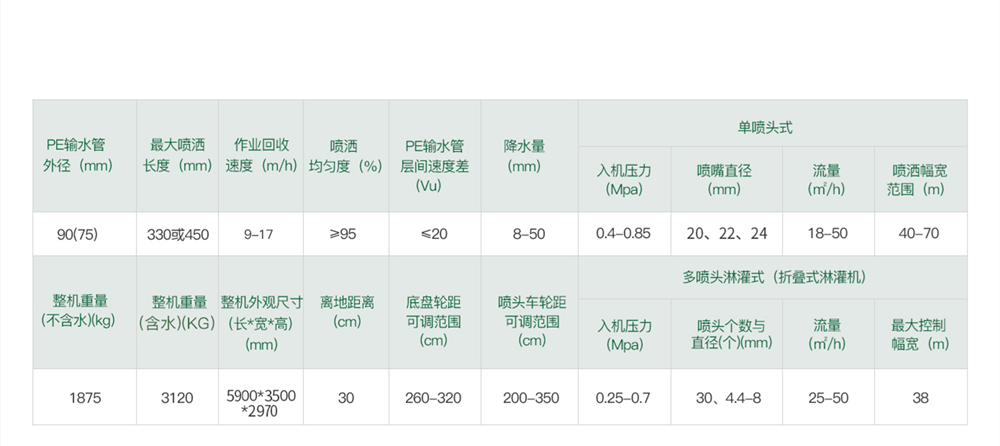 8JP75-450(8JP90-330)六檔型淋灌機優勢 |