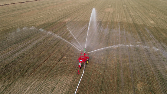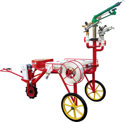 4、噴灌車固定位置澆地,多噴槍組合式噴灑,270度大半圓作業。80毫米水帶,最大出水量50/小時,1小時澆地約1.5-2畝。
